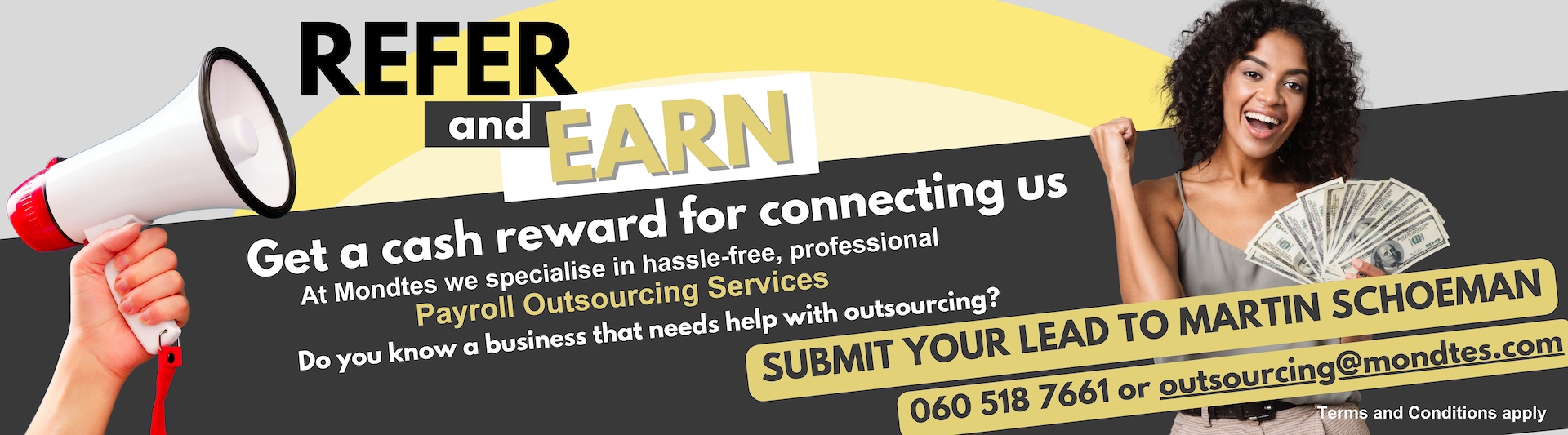 The referral fee is once-off and payable after the referred client successfully completes one full month of payroll processing with MondTes.